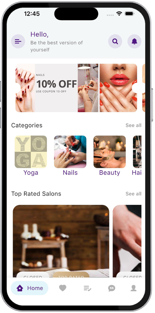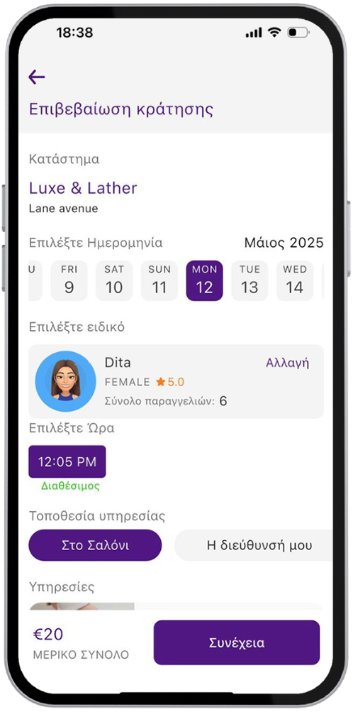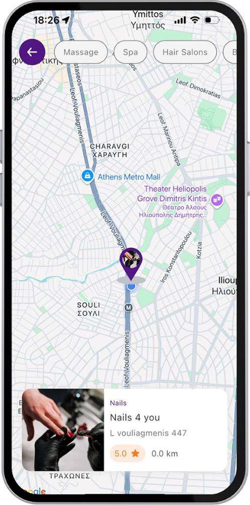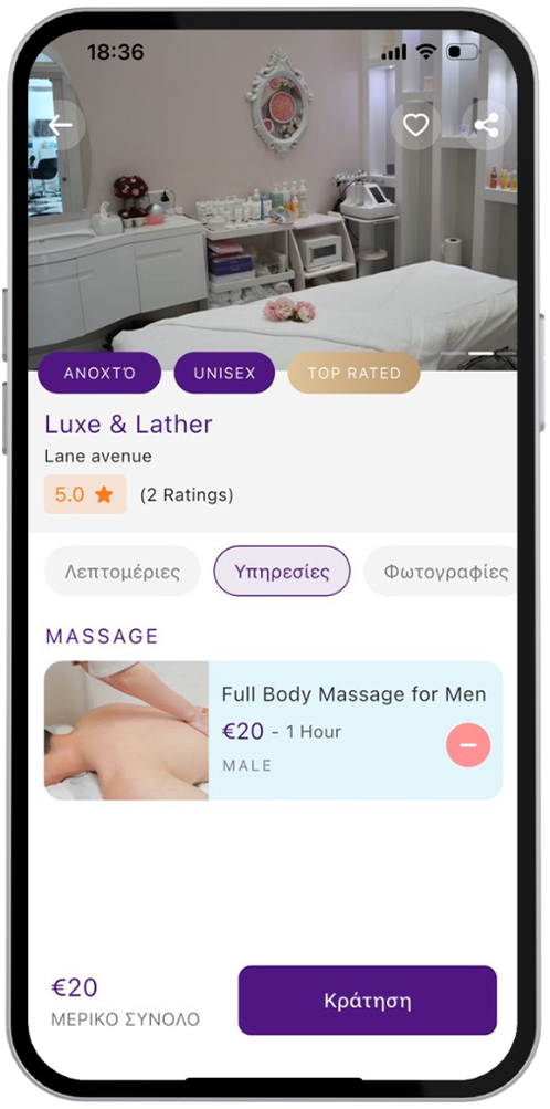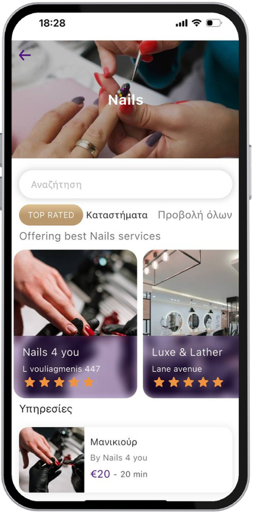 Ανακάλυψε και κλείσε σε δευτερόλεπτα κάθε υπηρεσία ομορφιάς, ευεξίας ή γυμναστικής, παρακολούθησε την εξέλιξη του ραντεβού σου σε πραγματικό χρόνο και απόλαυσε ασφαλείς in-app πληρωμές – όλα συγκεντρωμένα σε μία εύχρηστη εφαρμογή.